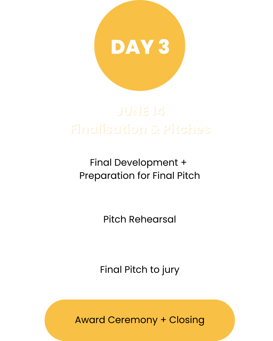 During that phase you will get all informations (Handbook including: Agenda, Venue, Food) getting to know your team, mentors, jury members, accommodation (if needed) and further administrative details for the three day.